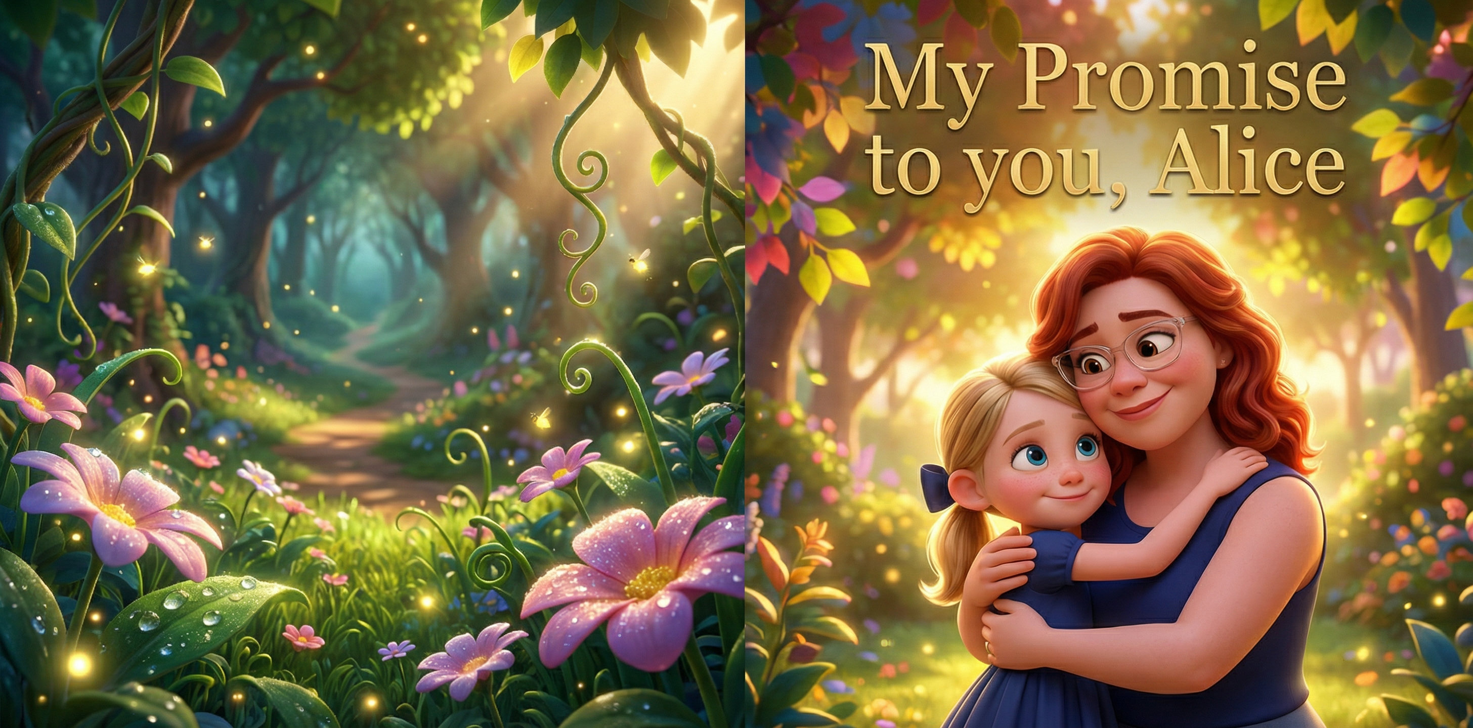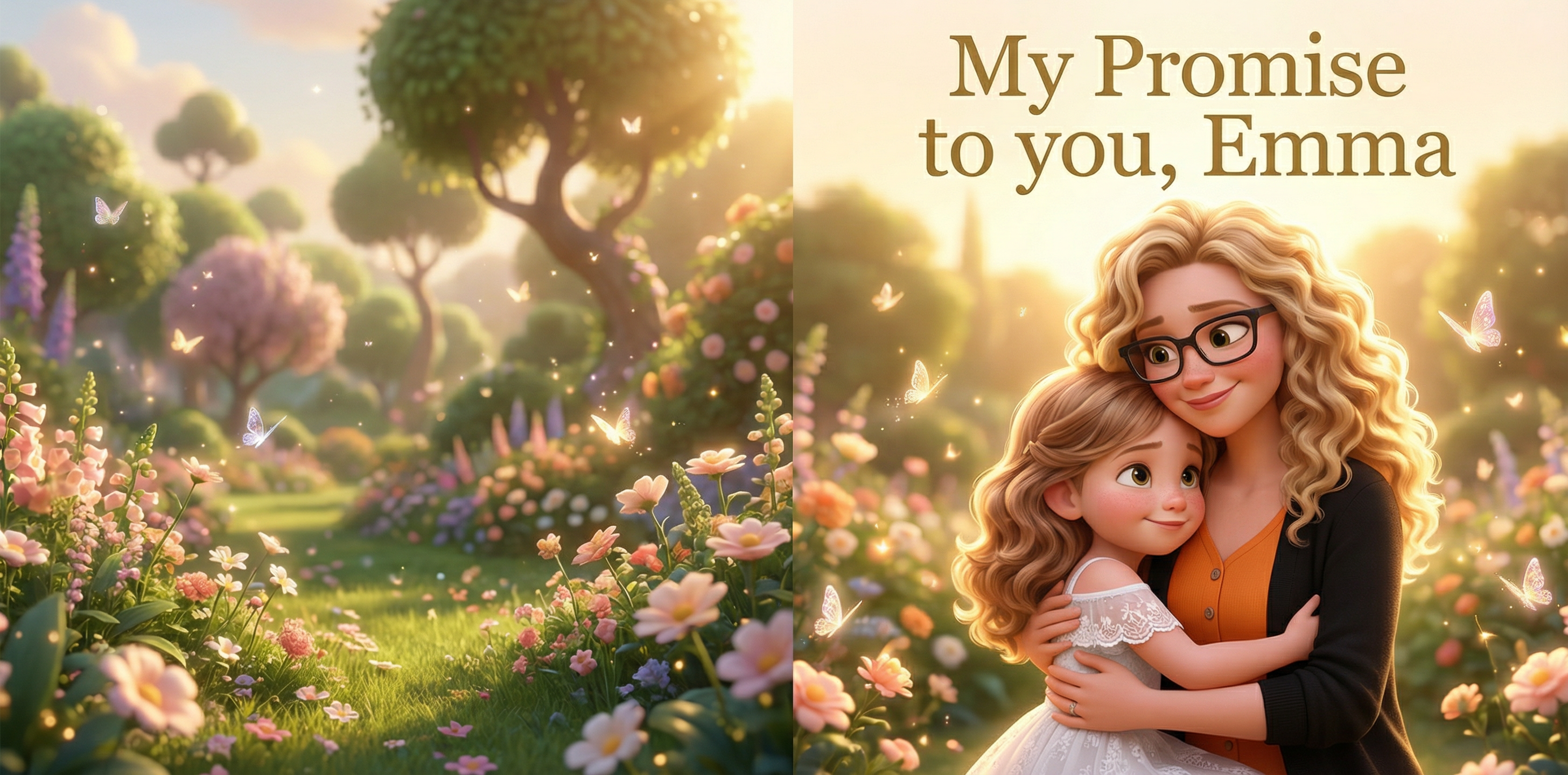 Upload two photos and watch as we create a beautiful, personalized storybook celebrating your journey together—from first steps to starlit nights.